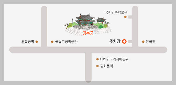 📌 회색음영 된 부분은 경복궁 야간개장 관람 시 볼 수 없는 부분이니 관람 시 참고해 주세요.