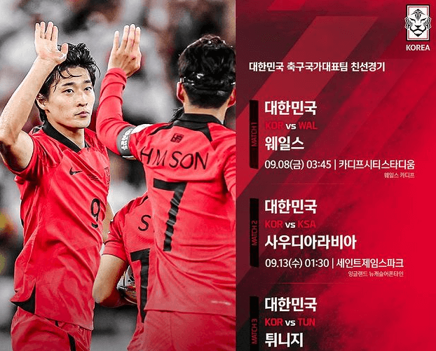 위르겐 클린스만(독일) 감독이 이끄는 대한민국 축구 국가대표팀은 10월 A매치 기간 튀니지(10월 13일 오후 8시·서울월드컵경기장), 베트남(10월 17일 오후 8시·수원월드컵경기장)과 A매치 평가전을 가진다고 합니다.