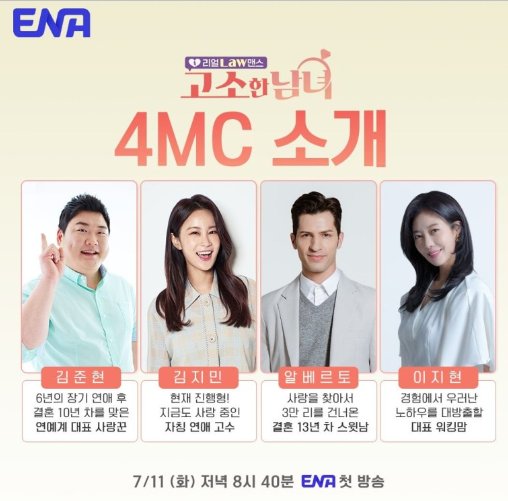 7월 11일 첫 방송되는 '고소한 남녀'에는 찰떡 호흡의 개그계 동료 김준현X김지민이 메인 MC를 맡았습니다.