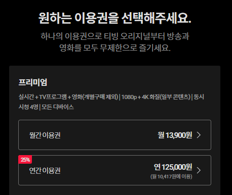 📌티빙TVING을 가입하는 경우에는 월 13900원을 내야 합니다.