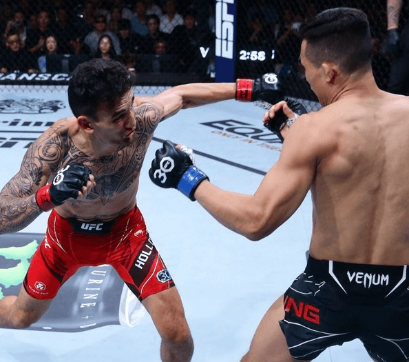 할로웨이는 92년생, 정찬성은 87년생으로 할로웨이가 5살 더 어린데 정찬성 선수 정말 잘싸웠어요. 격투기에서 5살 차이라니 .. 1라운드 서로 유효타를 주고 받으며 난타전을 했고, 2라운드 정찬성은 할로웨이의 초크에 걸리는 위기가 있었으나 가까스로 빠져나왔는데요.