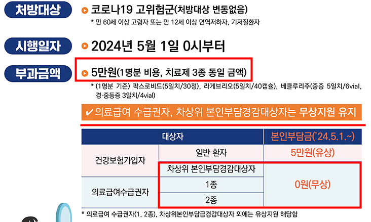 치료제: 고위험군에 대해서는 무상 지원이 계속되고 있어요.